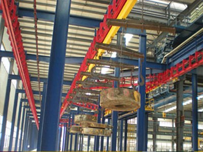 重型積放式懸掛輸送機是我公司定型優質產品。其系統主要由驅動裝置、張緊裝置、軌道系統、牽引鏈條、承載車組及載荷梁等組成。該輸送系統已在工程機械、冶金等行業得到成功應用,獲得用戶一致好評。