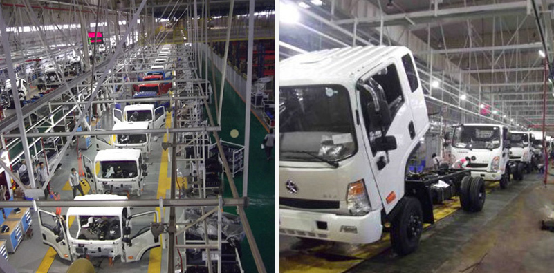 本總裝生產線用于CGC1047等車型的內飾裝配、底盤裝配、平板貨廂合裝、自卸貨廂合裝等總裝工序,同事也包括發動機、后橋等部件的分裝,年產6萬輛汽車,生產節拍為3.5分/輛,轉載處節拍3分/輛。