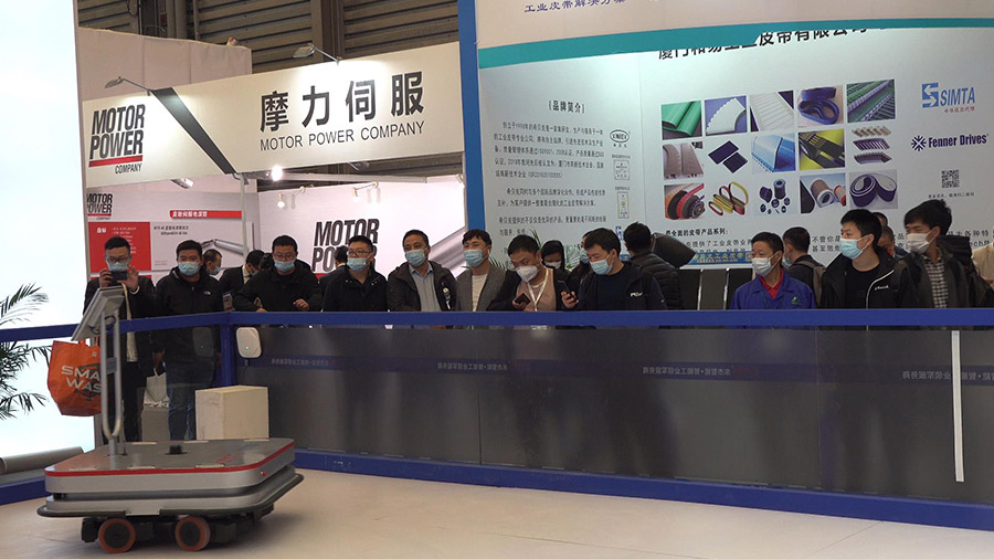 黑科技展示區人頭攢動,行業專家、客戶紛紛駐足拍照,詳細了解四驅全方向協同運動控制技術。