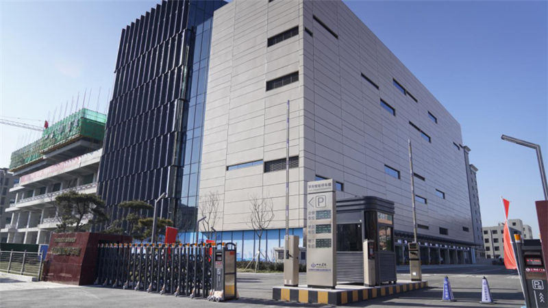 學府智能停車樓位于塢城路與學府街交叉口西北角,該項目建筑面積17908.41平方米,總高度為38.75米,分為南北兩個庫,南庫停車層13層,北庫停車層11層,共計1204個停車位,其中機械停車位918個,室外停車位118個,商務樓地下兩層停車位168個。樓體設置11個相互獨立的進口和出口,實現了獨立連續存取車輛。