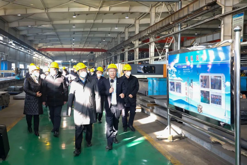 吳存榮帶隊參觀了東杰智能智能制造二期生產(chǎn)基地,仔細聽取了藺萬煥總經(jīng)理的介紹,著重了解了東杰智能的公司業(yè)務(wù)發(fā)展情況、技術(shù)創(chuàng)新研發(fā)情況、經(jīng)營情況及未來發(fā)展規(guī)劃等內(nèi)容。